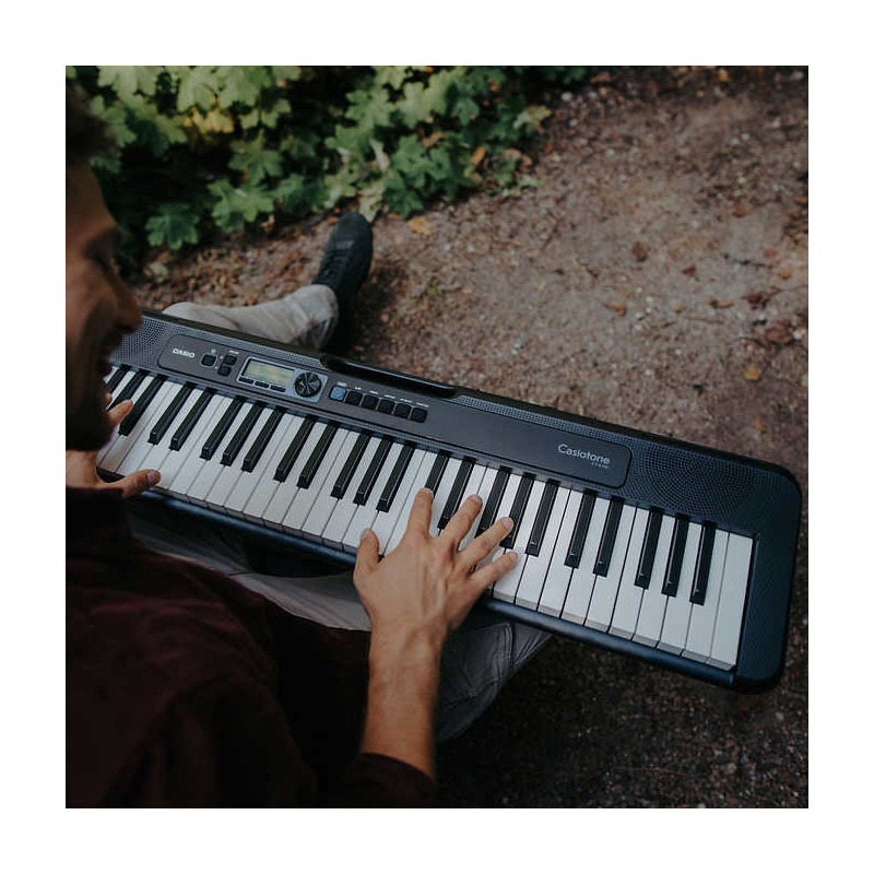 The ultra-compact CT-S190 lets you make music wherever and whenever you want. Just pop in six AA batteries, grab the built-in carrying handle and take your inspiration to go. Casiotone keyboards even include power supply and music rest.