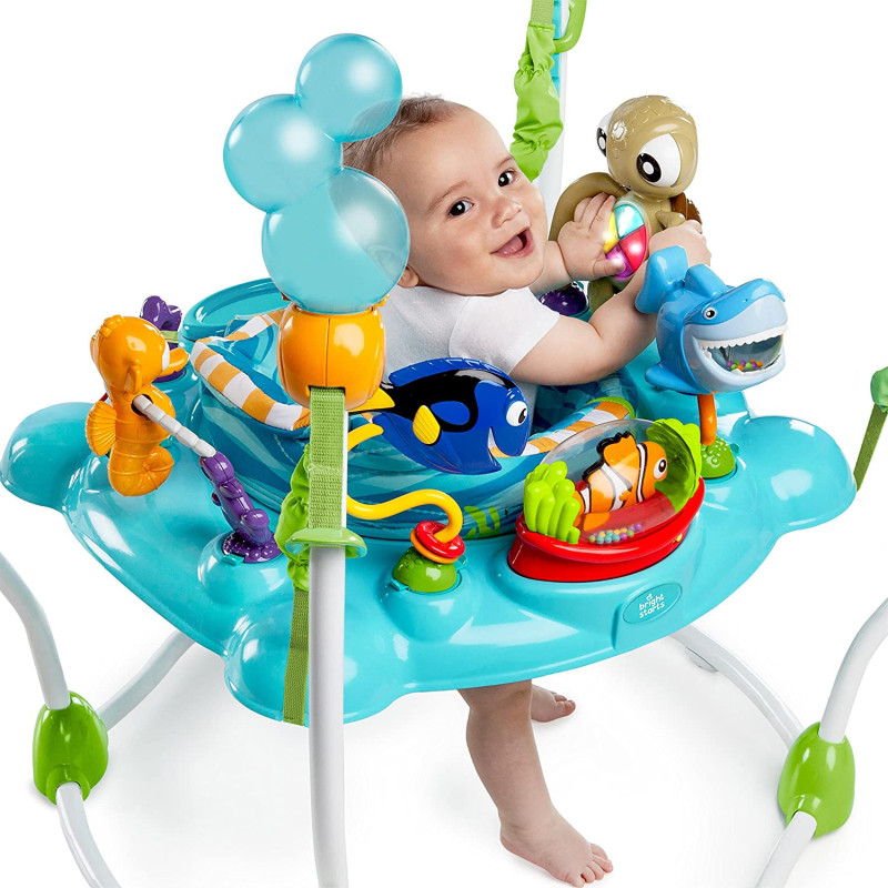 Just keep jumping with the Finding Nemo Sea of Activities Jumper! This magical entertainer from Disney Baby will take your baby on an underwater adventure all the way to P. Sherman 42 Wallaby Way Sydney. Surrounded by a sea of Nemo-themed toys, you’ll watch waves of wonder upon her face as she interacts with the 13+ activities created by Bright Starts. She’ll clown around with her favourite clown fish, sea herself in a baby-safe mirror and play with all her Nemo favourites, like Dory, Bruce, Mr. Ray and more. Baby can steer her ship anyway she wants in her 360-degree rotating chair, made with a high-backed seat for extra comfort. With dancing lights, sweet songs and Finding Nemo friends, your baby will love to dive into playtime!