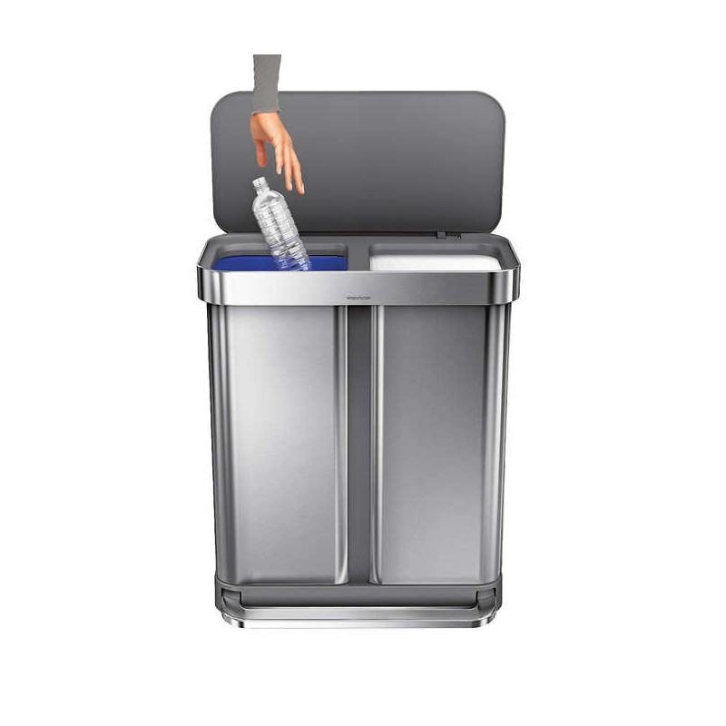 - Dual compartments mean one side for trash, one side for easy disposal of recyclables
