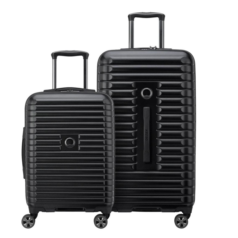 The Delsey Paris 2 pc Trunk Set offers you a fresh way to travel in style with ease. This new innovative trunk format is not only suitable for air travel but will fit perfectly in the trunk of your car! With the 30/70 split opening, packing is a breeze; clothing items sit in the large bottom, while toiletries and shoes are packed in the lid behind a divider. Both bags in the set are equipped with Delsey dual-density spinner wheels for a silent and smooth ride, as well removable and washable lining to keep the bags fresh for the next getaway. The trunk style also features a TSA-accepted lock as well Delsey patented securitech zip that is 3 times more resistant than a standard zip.