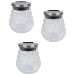 3 Pack Solar Crackle Glass Jar with Microdot LEDs – Clear