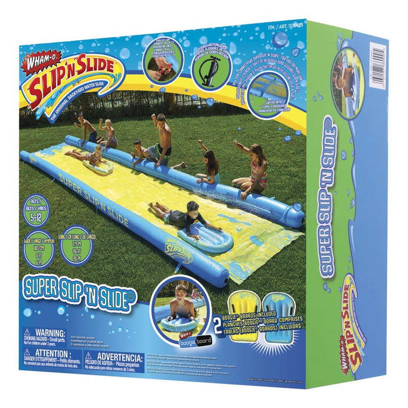 7.9m x 1.2m giant soaking water slide made from extruded heavy duty vinyl. Water sprays along the full length of the slide for hours of outside fun.