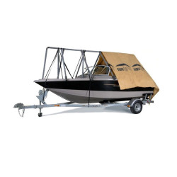 Navigloo Winter Boat Shelter is a pontoon/fishing boat system is a modular, complete, off-season boat storage system that fits boats from 14 to 18-1/2' (4.26 to 5.63 m) with tarpaulin included