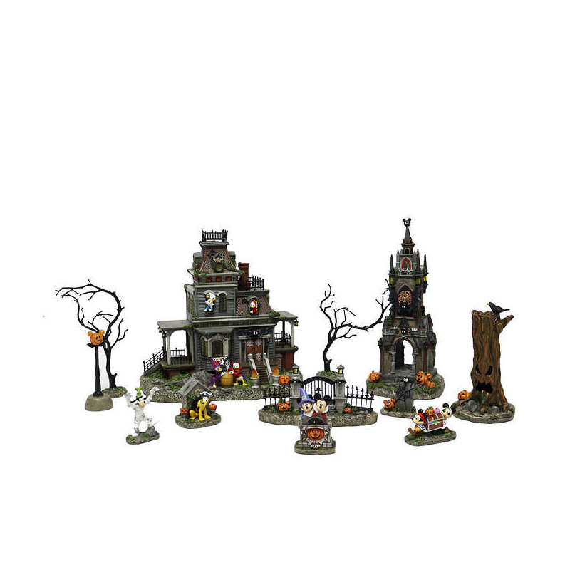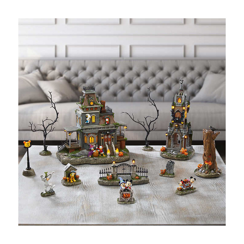 Mickey Mouse and friendly fiends inhabit this wickedly whimsical, multi-piece Halloween scene. A splendidly spooky centrepiece.