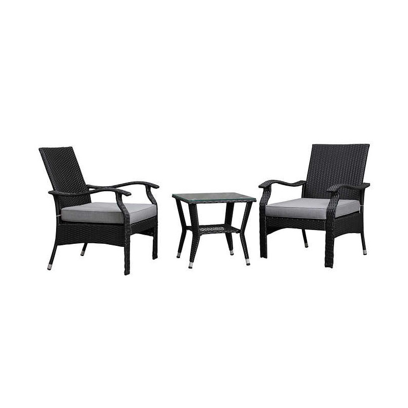 - Set includes 2 chairs, 1 table, and 2 7cm thick seat cushions