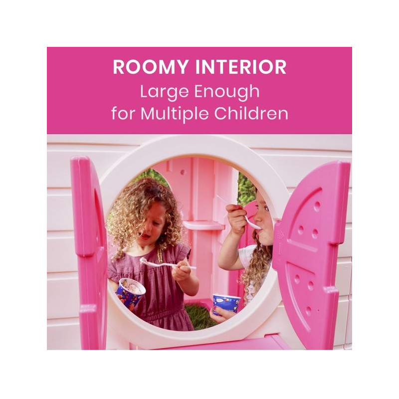 This playhouse features easy snap-in assembly that requires limited tools, Set up your child’s playhouse within minutes.