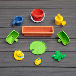Kids can create their own water play fun with the child-activated water pump in their very own water garden!